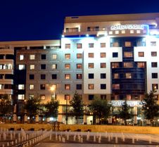 Straight across from the metro very easy to find . Ideal hotel for sightseeing good breakfast with plenty of choice . Very clean and staff excellent would recommend this hotel .